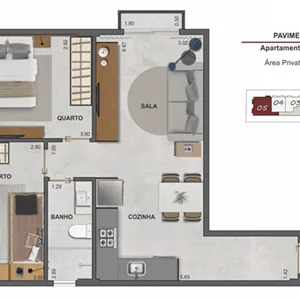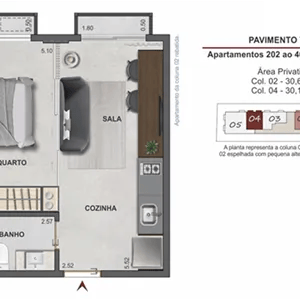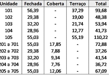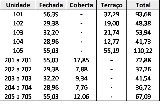 (Térreo, 07 andares de apartamentos, PUC e Telhado) Áreas Privativas:
