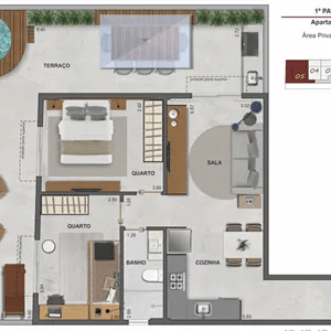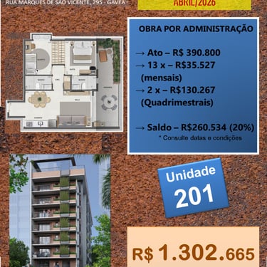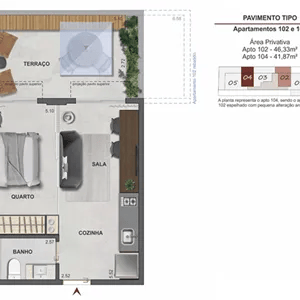 Unidades de 1 quarto - direito de uso de 01 vaga suspensa, mediante aquisição do duplicador de vagas.